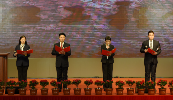 今天的工程校园,粉妆玉砌、银装素裹;今天的逸夫报告厅,彩旗招展、花团锦簇,处处洋溢着隆重热烈、喜庆祥和的节日氛围。大会开始前,会场播放了《征程——庆祝黑龙江工程学院建校70周年主题宣传片》,全面回顾和展示了学校70年艰苦卓绝的办学历程和辉煌的办学成就。各地校友通过视频短片为母校送上真挚的祝福,展现了拳拳的赤子心、浓浓的母校情。有关部门、兄弟院校、科研院所、企事业单位等纷纷发来贺信或贺电,向学校表达衷心的祝贺和美好的祝愿。 大会奏响雄壮的国歌《义勇军进行曲》。党委书记于沐琳宣布庆祝黑龙江工程学院建校70周年大会正式开始。
