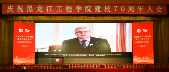 海外高校代表、芬兰卡累利阿应用技术大学校长佩特里·莱沃教授通过视频致辞,向黑龙江工程学院70周年校庆致以最热烈的祝贺。他表示,黑龙江工程学院过去是、将来也是芬兰卡累利阿应用技术大学在中国最重要的合作伙伴,期待两校长期和富有成效的合作持续下去、实现共赢。