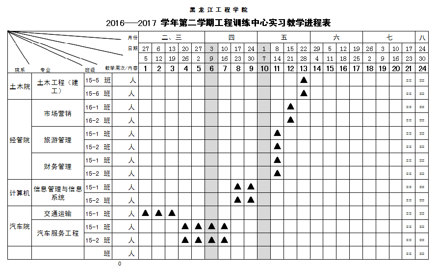 2016-2017学年第二学期《工程训练》实践教学进程表