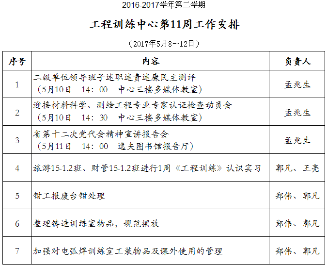2016-2017学年第二学期《工程训练》实践教学进程表