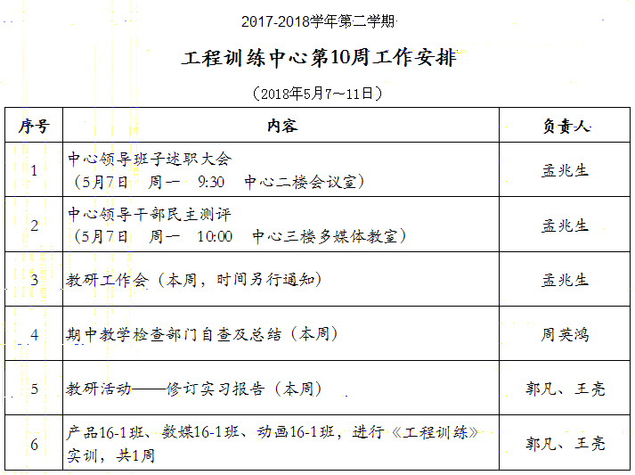 中心17-18(2)第10周工作安排