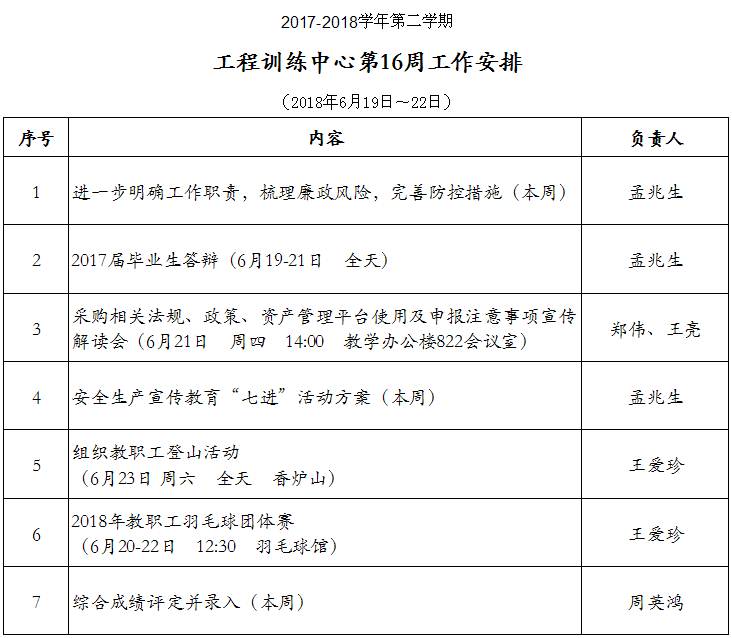 中心17-18(2)第16周工作安排