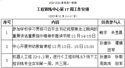 2023-2024学年第一学期工程训练中心第16周工作安排
