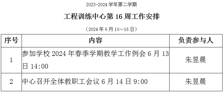 工程训练中心2023-2024(2)第16周工作安排