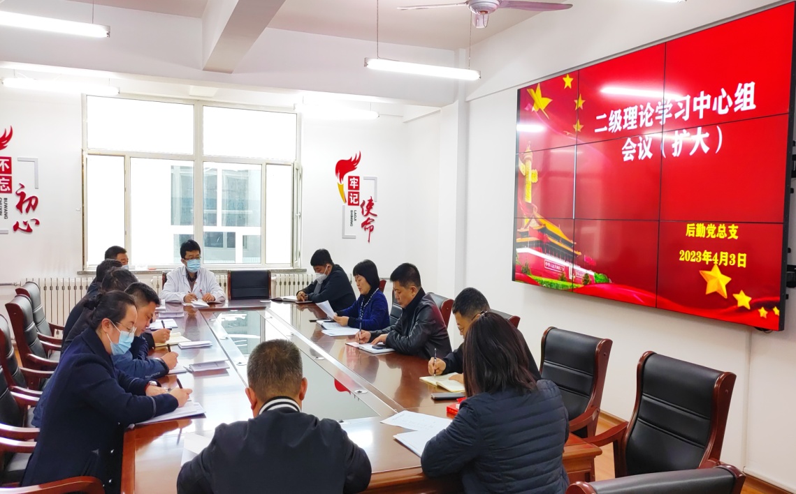 2023年4月3日,后勤党总支委员会在后勤楼215会议室召开二级理论学习中心组(扩大)会议,传达学习全国两会精神。会议由党总支书记杨宏主持,参会人员为总支委员会委员及各部门负责人。  党总支书记带领参会人员认真学习全国两会精神,并要求后勤人要把学习贯彻全国两会精神作为重要政治任务,与深入学习贯彻党的二十大精神相结合,严格按照学校党委要求,结合学习贯彻习近平新时代中国特色社会主义思想主题教育,以能力作风建设“工作落实年”活动为抓手,全面提升工作形象,提高师生满意度,推动能力作风建设常态长效。 习近平总书记全票当选国家主席、中央军委主席,充分反映了全党全军全国各族人民的共同心愿,充分体现了党的意志、人民的意志、国家的意志的高度统一,是历史的选择、时代的选择、人民的选择。全国各族人民将更加紧密地团结在以习近平同志为核心的党中央周围,高举中国特色社会主义伟大旗帜,坚持以习近平新时代中国特色社会主义思想为指导,全面贯彻党的二十大精神,自信自强、守正创新,凝心聚力、埋头苦干,为全面建设社会主义现代化国家、全面推进中华民族伟大复兴而团结奋斗! 后勤党总支委员会 2023年4月3日
