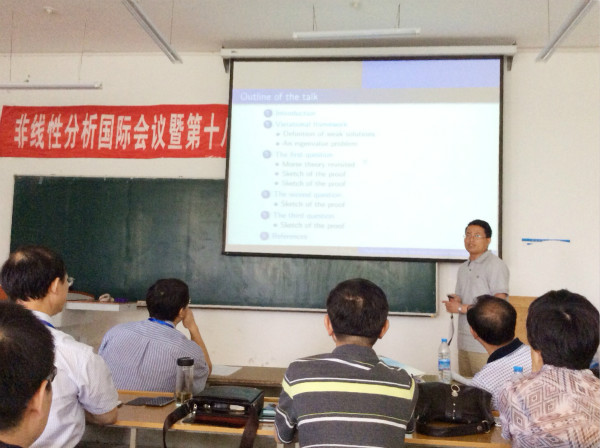 应用数学研究所所长张彬林博士于7月7-11日出席了由美国数学科学研究所(AIMS)主办的第十届国际数学大会“Dynamical Systems, Differential Equations and Applications”,并在学科组的分组会“Variational methods for discrete and continuous boundary value problems (with applications)” 及“Nonlocal fractional problems and related topics”上作两次30分钟的学术报告,报告题目分别为:“On non-local fractional equations with asymmetries” 及“Multiple solutions for non-local fractional problems via Morse theory”。