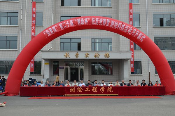 9月26日,“拓普康”第二十届“测绘杯”技能竞赛暨测绘科技活动月开幕式在实验楼门前隆重举行。学校副校长白玉出席开幕式,黑龙江省测绘地理信息学会秘书长沈安生、黑龙江省测绘计量仪器检定站副站长何凤良、销售总监朱凤敏、黑龙江省苏一光测绘仪器经销有限公司总经理朱文喜和省内六所参赛高校教务处长、相关学院院长以及我校相关部门负责人和测绘工程学院师生参加了开幕式。