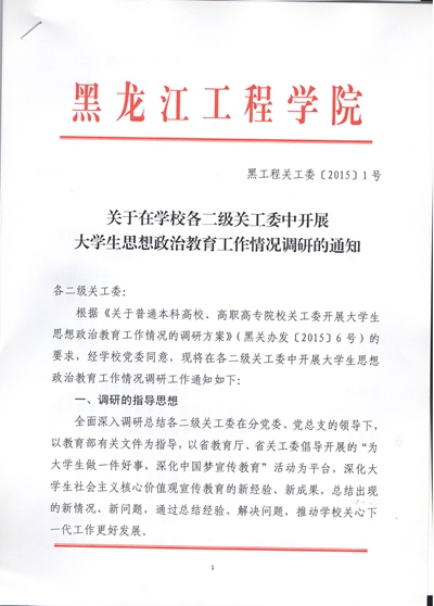 关于在学校各二级关工委中开展大学生思想政治教育工作情况调研的通知
