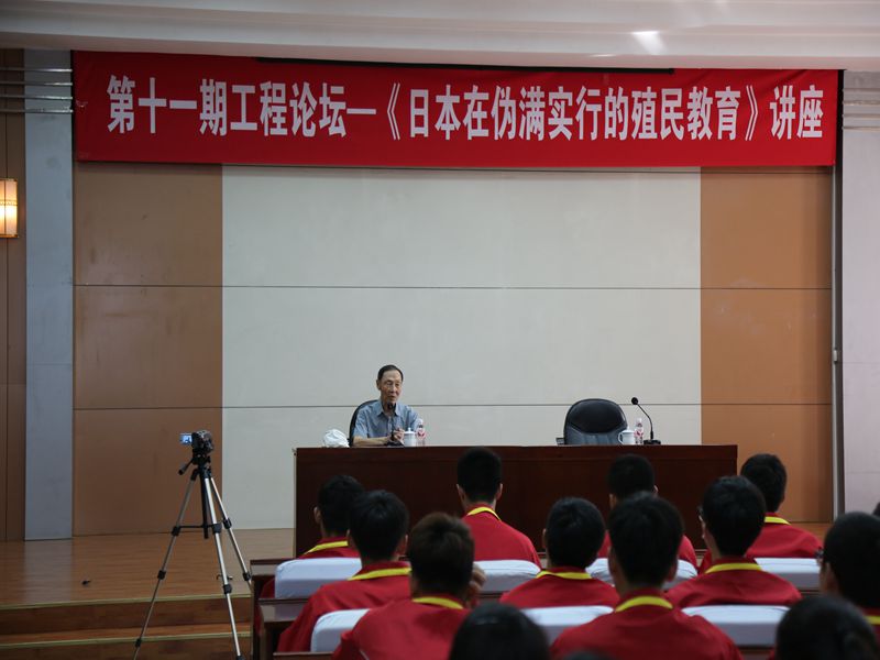 9月2日下午,主办方邀请我校离休干部,85岁高龄的张立华老师为学生做了题为《日本在伪满实行的殖民教育》的讲座。聆听讲座的是大一的新同学。这对他们来说,是意义非凡的“入学第一课”。张立华老师结合自己幼年的经历,从日本在东北实行殖民主义的愚民教育,“同化”和“奴化”中国人;实行法西斯主义的教育方法,推行军国主义,提倡“绝对服从”精神;实行思想统治,迫害进步教师;奴役广大中国学生等四个方面,讲述了日本人在东北犯下的滔天罪行。张立华老师的讲述援引史实,证据充分,分析透彻,为大学生上了一堂非常精彩的爱国主义教育课,赢得同学们的热烈掌声。
