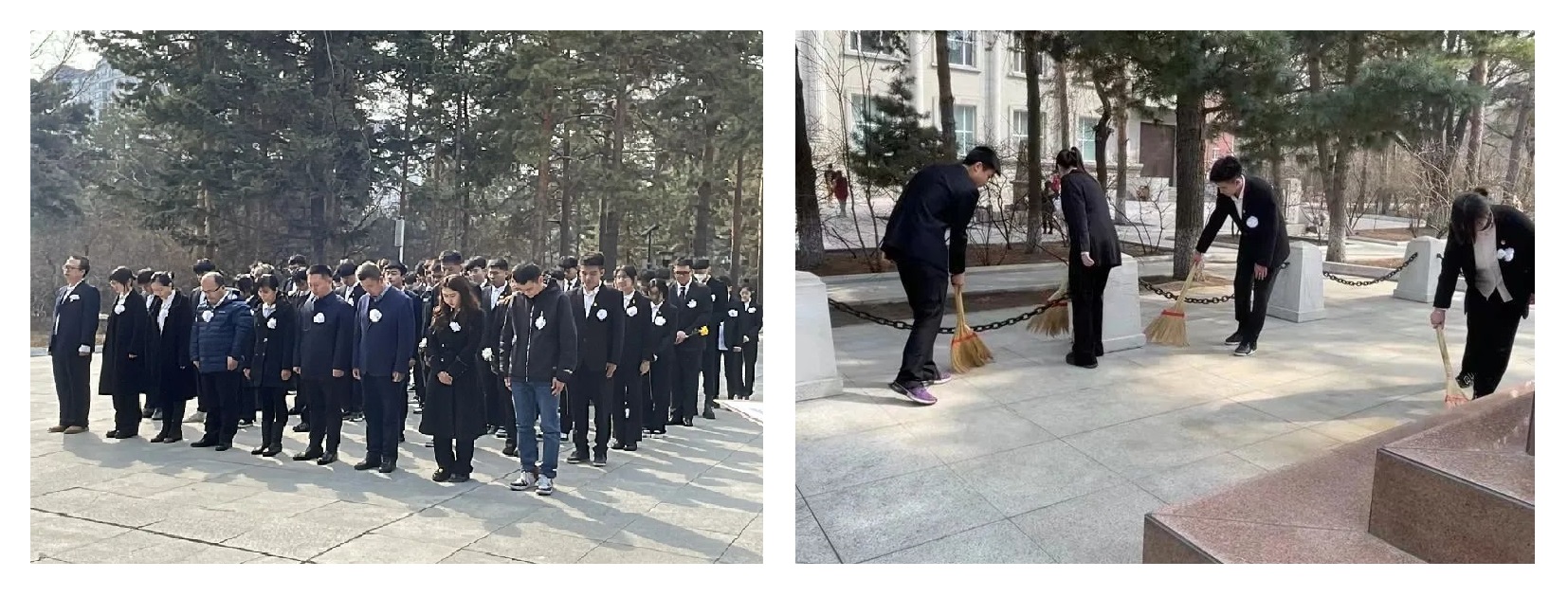 学生代表有序献花后集体默哀,共同表达对烈士牺牲精神的无限敬佩。一是,对为维护国家尊严,献身民族独立解放、国家繁荣昌盛和人民自由幸福的无数英烈表达我们的追忆和缅怀;二是,在和平年代,我们广大青年,作为社会主义未来的建设者和接班人,就更应该坚定理想信念跟党走,一幕幕英雄事迹再次浮现在脑海,先烈们为了祖国的明天,面对死亡毫无畏惧,对革命充满了坚定的信念。我们将以先烈为榜样,继续为党和人民的利益而奋斗终身。