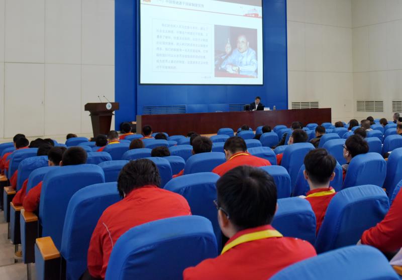 2020年10月23日下午,在综合楼报告厅蓝厅,学校党委书记张洪田教授亲自走上讲台,为学生讲授思政课,对党的十九届四中全会精神进行了系统全面、准确深入、解渴管用的解读。 报告从推进国家治理体系和治理能力现代化若干重大意义;中国特色社会主义制度和国家治理体系的显著优势;推进国家治理体系和治理能力现代化总体目标和重点任务等方面,对党的十九届四中全会精神进行了深入解读。把全会精神及时准确全面落实到高校思政课教学过程,切实加强制度自信教育和制度理论研究,同学们普遍反映,这堂课主题鲜明、重点突出,对增强“四个意识”、坚定“四个自信”、做到“两个维护”,把思想、认识和行动统一到以习近平同志为核心的党中央决策部署上来,切实加强制度自信教育具有重要指导和推动作用。 校领导带头讲思政课,是深入贯彻落实习近平总书记在学校思想政治理论课教师座谈会上的讲话精神和中共中央办公厅、国务院办公厅印发的《关于深化新时代学校思想政治理论课改革创新的若干意见》文件精神的重要举措,是加强立德树人工作的务实之举,体现了学校领导班子对学校思想政治理论课程建设的高度重视,同时,张书记在讲课中所展现的坚定理想信念、深厚学术功底、宽阔理论视野、富有亲和力及专业针对性的讲授风格也为思政课教育教学起到了良好的示范作用。