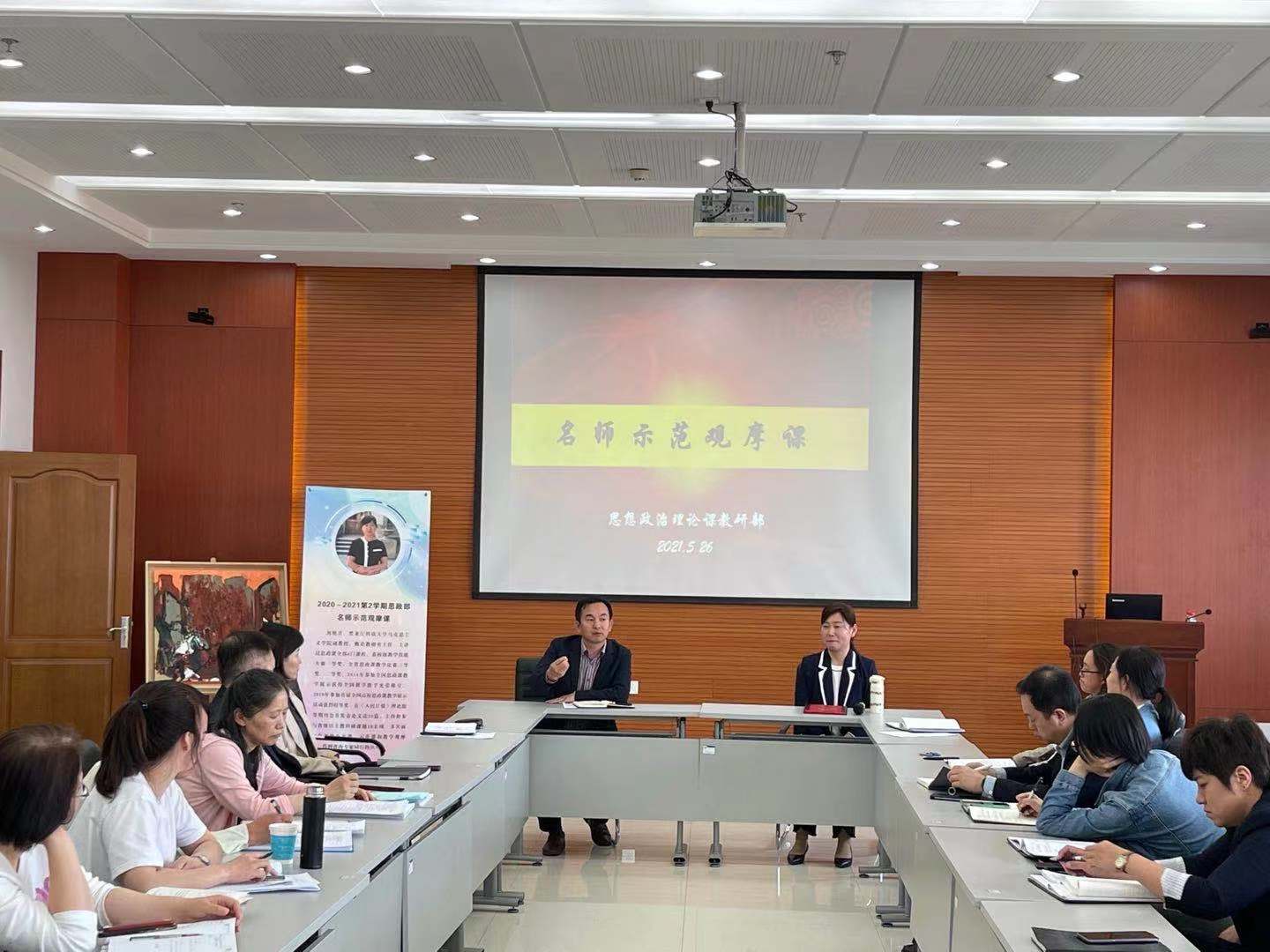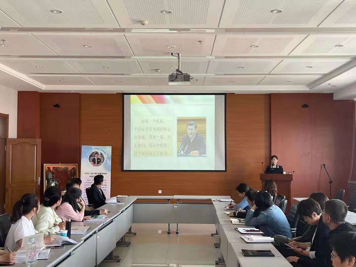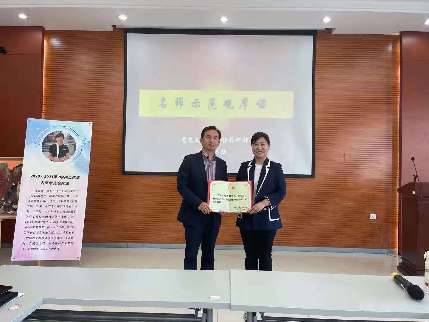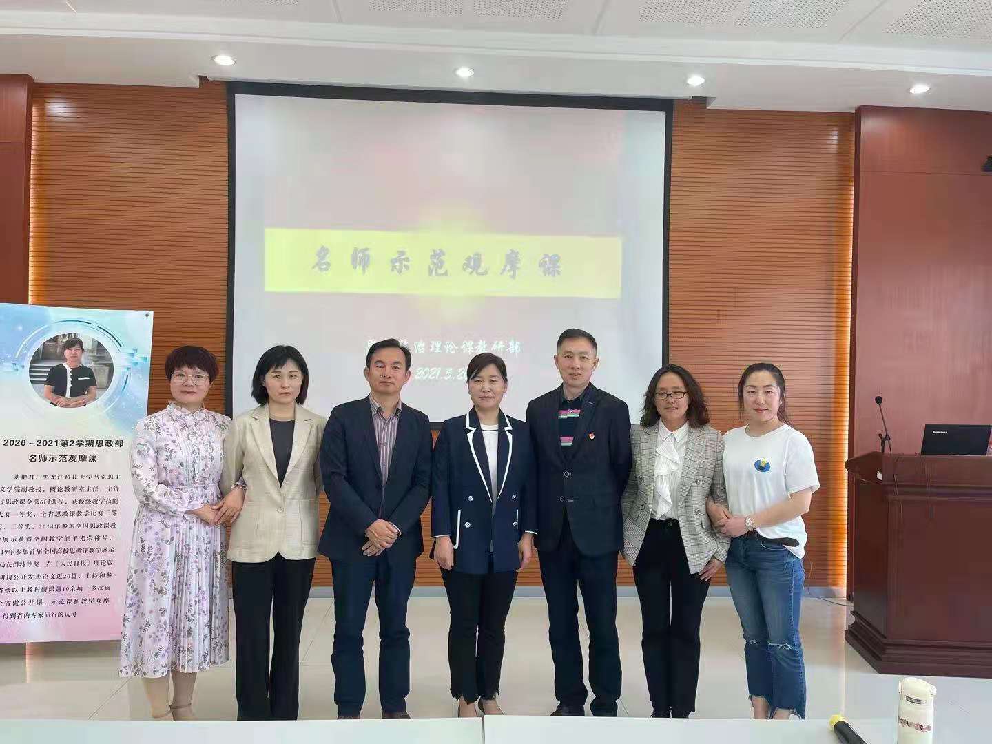 思政部开展名师示范观摩课 思政部一直重视教师教学能力提升。党史学习教育开展以来,按照学校整体部署,思政部围绕落实立德树人根本任务,精心谋划,精细安排,精准实施、务求实效,以提升思政课教师育人能力为目标,将党史学习与思政课建设相结合、与课堂教学相结合、与学生教育相结合,推进党史学习教育走深、走新、走心。运用好特聘教授的资源优势,发挥教学名师的示范、引领和辐射作用,推进我校思想政治理论课教学改革,5月26日下午,思政部邀请全国高校思想政治理论课教学展示活动特等奖获得者,黑龙江科技大学马克思主义学院概论教研室主任刘艳君副教授为思政部全体教师做了一次题为《培育和践行社会主义核心价值观》的名师示范课。 刘艳君老师为思政部教师带来了精彩的课堂体验,与大家分享了参赛、党史融入课堂的经验,并与老师们就课堂教学设计,教学方式、方法等方面进行深入探讨。强调讲透了思想理论,用鲜活事例赋予教学以时代感和吸引力,切实做到了从教材内容体系向教学内容体系的完美转换。
