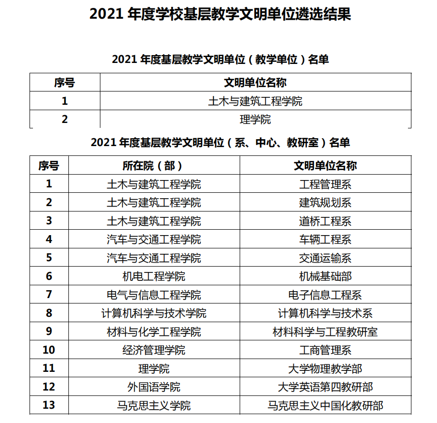 根据学校精神文明建设指导委员会相关工作要求,学校开展了遴选推荐2021年度学校基层教学文明单位的工作。我院马克思主义中国化教研部经团队申报、学院推荐、职能部门审核、校教学指导委员会审议通过,最终荣获2021年度学校基层“教学文明单位”荣誉称号。