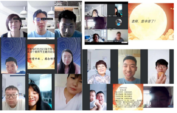 2022年中秋节与教师节不期而遇,值此中秋小长假之际,马克思主义学院教师组织学生社团日新知行社举办了一场别开生面的线上活动,活动以“回望中秋,感念师恩”为主题,社团新老社员齐聚云端,畅叙家人亲情,回忆成长师恩。 日新知行社是2015年5月由马克思主义学院樊海源、王炜杰、那威三位老师共同组建的黑龙江工程学院国学经典诵读社团。社团以国学经典诵读为基础,以国学实践为核心,涵养大学生的文化底蕴和道德品格。通过每日诵读经典、学习分享,定期开展国学实践活动,将国学经典内化于心外化于行。 活动由社长工程管理20-2班高欢同学主持,社员们追溯中秋节的历史文化渊源,品读以中秋、月亮为主题的诗词佳句,分享社团成员家乡中秋节的风俗习惯,感受到同为中秋,赏明月,尝月饼,品家宴,虽形式相近,但南北风格迥异,由此展示出中国传统民俗文化的多姿多彩。 在感念师恩环节,新老社员分享了自己从小学、中学到大学一路走来对自己影响最大的老师,有面对学生口吃问题给予学生鼓励与自信的小学老师;有教学得法,将最差班级教成学年第一的语文老师;有知识渊博,讲课有深度、有韵味,人格有魅力的历史老师;有潜心教学,不断改进教学方法,不放弃每一名学生,尽职尽责的班主任;还有像妈妈一样关心学生成长,帮助学生走出人际交往困境的大学老师……从每一位社员的言语中感受到他们对老师的感恩感谢之情。 财管16-1班李鹏高、建筑学14-2班车跃、建筑学14-1班、龚洪,车辆工程14-1陈友超等老社员虽然毕业多年依然心系社团,与学弟学妹们分享了自己的感悟,在社团的成长与收获。第一任社长浙江大学在读博士电子信息工程13-1班张峰峰怀抱刚7个月的女儿参加活动,给社团活动增添了家人团聚般的温馨。 日新知行社举办这次云端“双节”主题活动,既是对乡情、亲情、师生情的感怀,也是中华优秀传统文化的传承。中秋节的月亮、月饼、家宴承载着乡情与亲情的传递,教师节的祝愿则是对师生情的表达,从“双节”的祝福中我们可以感受到中华民族传承下来的感恩文化,感恩既是一种情感的表达,更是中华民族传统美德的传承。