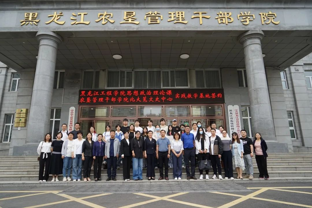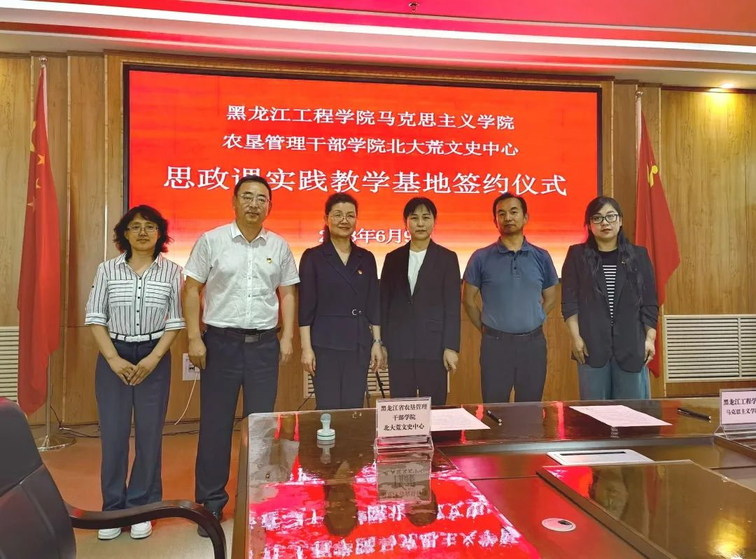 为进一步推进“大思政课”建设,持续推动思政课实践教学改革创新,充分调动社会资源,加强校地合作,6月9日上午,马克思主义学院组织师生到黑龙江农垦管理干部学院北大荒文史中心开展了实践教学集体备课活动,参观了“致敬光影中的北大荒经典”主题展览,并与北大荒文史中心签订思想政治理论课实践教学基地协议。签约仪式由学院副院长周立平与北大荒文史中心主任王丽萍共同主持。