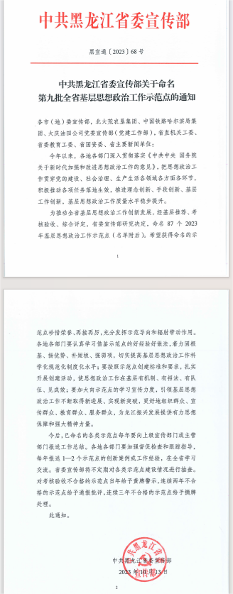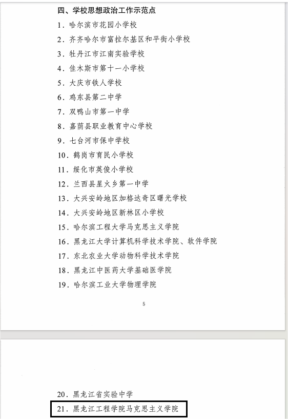 日前,省委宣传部发布《中共黑龙江省委宣传部关于命名第九批全省基层思想政治工作示范点的通知》,对全省在积极推动思想政治工作落地生效,推进创新手段、创新基层工作、创新基层思想工作质量水平稳步提升的单位进行命名,包括黑龙江工程学院马克思主义学院在内的一批基层单位被命名为2023年全省基层思想政治工作示范点。全省高校有6个基层单位获此命名。 近年来,学院高度重视思想政治工作,坚持用习近平新时代中国特色社会主义思想凝心铸魂,全面落实立德树人根本任务,推动党的二十大精神、习近平总书记关于思政课建设系列重要讲话精神、思政课铸魂育人使命深度融入学院各项工作中。学院不断完善思想政治工作体系,在实践中不断创新思想政治工作新方法和新途径,围绕“培养什么样的人、如何培养人以及为谁培养人”这个根本问题,立足思想政治理论课建设,充分发挥学习、研究、宣传马克思主义的主阵地作用,积极推动工作理念创新、手段创新,在师资队伍建设、思政课程建设、人才培养及社会服务等方面,强化特色品牌示范作用,多维度扎实推进思想政治工作,推动思想政治工作高质量发展。 今后,学院将以此次命名为契机,珍惜荣誉,再接再厉,进一步突出特色亮点,充分发挥示范导向和辐射带动作用,筑牢为党育人、为国育才的初心使命,积极履行理论普及、思想引导、凝聚共识的工作使命,发挥课堂主渠道作用,推进党的创新理进教材进课堂进头脑,守好讲台主阵地,以创新思维推进落实思政课教育教学各项工作任务。进一步加强和改进新时代基层思想政治工作,切实将思想政治工作融入到学院各项工作之中,提高基层思想政治工作科学化规范化制度化水平,不断提升学院思政工作的影响力和美誉度。