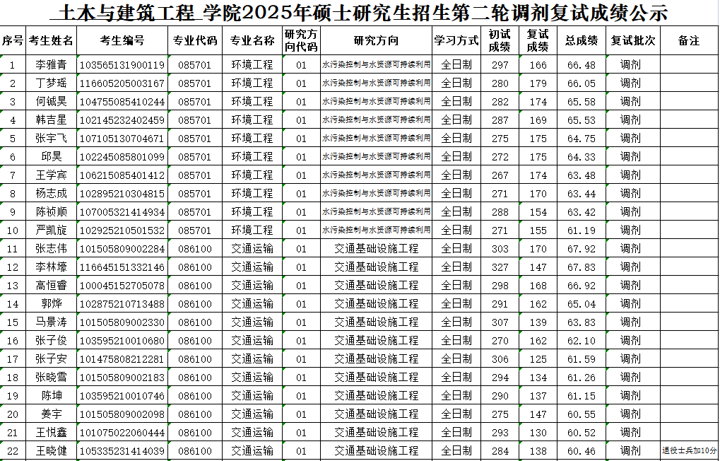 土木与建筑工程学院2025年硕士研究生招生第二轮调剂复试成绩公示