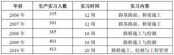 以龙建路桥股份有限公司为代表的企业同样也一如既往地支持学校的发展,通过多种形式给与学校资金或设备的捐赠,特别是为学生在企业实习和工地实习予以大力支持和创造方便条件,特别是龙建路桥股份有限公司历来是我校学生实习的最大合作伙伴(见表3)。