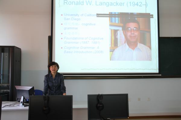 在讲座中,李教授首先介绍了认知语言学的历史以及国外主要研究学者以及他们的研究成果,如:Ronald W. Langacker ,George P. Lakoff ,Leonard Talmy,Adele E. Goldberg和William Croft等。然后介绍了历史比较语言学、系统功能语言学和认知语言学的哲学基础。在详细介绍认知语言学的哲学理论的基础上对范畴化、图式化、凸显机制以及注意机制等几个认知语言学中的主要研究议题做了深入浅出的介绍。讲座结束后,李洁红教授就认知语言学的主要研究议题同外语系专业教师又进行了深入地交流。