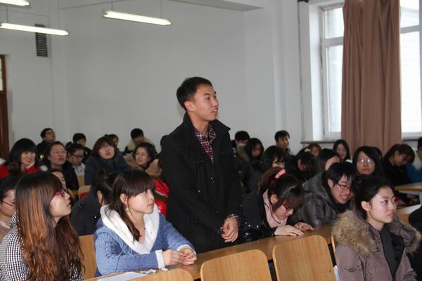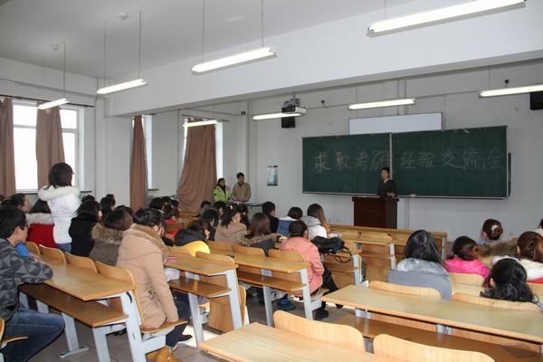 外语系副书记金延军在交流会开始前强调,大家要认真听取经验,并指出在当今社会求职和考研形势日趋严峻的情况下,只有更好地储备好自己的力量才能蓄势待发,才能在这激烈的社会竞争中争取更有利的位置。会议正式开始后,考取北京大学硕士研究生的芦星和来自中国银行股份有限公司营口分行的孙明星、黑龙江加美澳联出国咨询有限公司的吕爱博、北京福斯汽车电线有限公司的潘晶晶、哈尔滨市环卫局的孙伟5位毕业生代表依次上台讲述了她们从毕业求职到工作至今的经历和经验,并就毕业生的职业规划、就业、择业的定位、实用而新颖的求职面试技巧等方面的问题讲述了自己的观点,同时,告诫大家要认真对待专业知识的学习,在平时的生活中要注重自身社会实践经验的积累,尤其要提高自己的表达能力和思维能力,只有不断地积累自己的力量,才能在机会到来时更好地把握,一飞冲天。台下同学们整场都认真专注的听着,并在之后的提问环节踊跃提问,毕业生代表们都一一进行了详细解答。