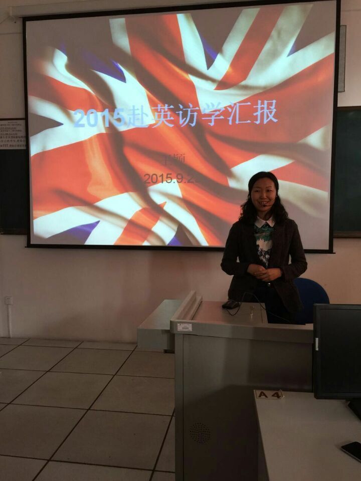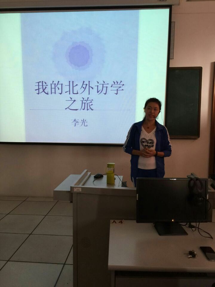 2015年9月23日下午, 外语系在B503教室,举行了学术交流报告会。由赴北京外国语大学访问学者李光和赴英国访学代表王颖老师做访学汇报。