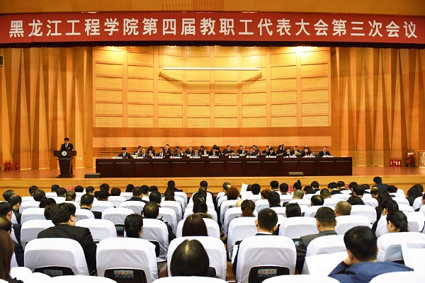 春暖大地,万物勃发。4月3日,学校第四届教职工代表大会第三次会议在逸夫报告厅隆重召开。来自学校教学、管理、服务岗位的188位正式代表肩负广大师生员工的嘱托出席会议,认真履行神圣职责,为学校发展建言献策。4位特邀代表、83位列席代表参加会议。 会议开始前,大会主席团举行第一次会议,通过了大会议程和大会日程安排。 上午9时,大会执行委员会主席、党委书记于凤荣宣布黑龙江工程学院第四届教职工代表大会第三次会议开幕。会场全体起立,奏唱国歌。 根据会议议程,校长张洪田代表学校作《工作报告》。他从九个方面回顾总结了2018年的主要工作:加强学习,以新思想新战略新思维引领学校发展;把握重点,实施重大改革发展任务攻坚行动;抓住关键,强化优势特色学科专业建设;突出中心,完善应用型人才培养体系;不断进取,提升科技服务能力;潜心育人,关爱学生服务学生;夯实基础,加强教师队伍建设;开放办学,扩大对外交流合作;综合施策,保障各项建设事业良好发展。张洪田校长在报告中客观地指出了学校发展中面临的问题和困难,提出了2019年工作的总体思路,明确了2019年学校主要工作任务。他指出,2019年是推进龙江全面振兴全方位振兴的攻坚之年,也是学校转型发展、全面提升,实现“十三五”发展目标的攻坚之年,做好今年的工作意义重大,影响深远。他强调,学校今后一个时期的工作主线是深入解放思想,推动学校高质量发展,今年的工作总基调是坚持稳中求进,对各项重大改革发展任务再落实、再攻坚。我们要牢牢扎根龙江大地办大学,坚持以国家需要为第一使命、以龙江需求为第一责任、以人民满意为第一标准,聚焦服务面向,同心协力、攻坚克难,以新理念引领高质量发展,以新动能推动高质量发展,以新作为实现高质量发展,在服务龙江全面振兴全方位振兴中实现新突破、实现新超越。根据学校党委二届五次全委(扩大)会议精神和工作部署,2019年要重点做好九个方面的工作:一是深入学习贯彻习近平新时代中国特色社会主义思想;二是持续推进攻坚行动,关键领域取得标志性成果;三是打造教育教学新生态,构建高水平人才培养体系;四是增强融合发展能力,提升服务龙江振兴贡献度;五是加强思想教育和价值引领,服务学生全面发展;六是筑牢事业发展基础,提升教师专业发展能力;七是持续拓展发展领域,着力培育发展新动能;八是持续推进综合改革,着力取得关键性突破;九是持续开展作风整顿,着力优化发展环境。 会议还听取了校学术委员会副主任委员、副校长宋立权作的《黑龙江工程学院学术委员会工作报告》与财务处处长任永维作的《学校财务情况报告》。 第一次全体会议结束后,各代表团进行了分组讨论。代表们认为,报告对2018年主要工作的总结,实事求是、全面准确,对2019年主要工作的部署,目标明确、思路清晰,充分体现了师生的共同愿望,让大家对未来充满期待。代表们纷纷表示要审议好、学习好、领会好工作报告,全面宣传好、贯彻好会议精神,解放思想、凝心聚力,助力学校高质量发展。 下午15时30分,大会执行委员会副主席、党委副书记杨弘宇主持召开第二次全体会议,表决通过了校长《工作报告》。大会在雄壮的国歌声中胜利闭幕。 新目标孕育新发展,新时代赋予新机遇。2020年是“十三五”收官之年,也是学校本科办学20周年,2022年将迎来建校70周年,学校又一次站到新的历史节点上。让我们在学校党委的正确领导下,深入解放思想,紧跟时代步伐,不忘初心、牢记使命,求实创新、锐意进取,以新的奋斗精神推进高质量发展,以新的创业激情建设特色鲜明的高水平应用技术大学,以新的服务贡献助力龙江全面振兴全方位振兴,以优异成绩庆祝新中国成立70周年!
