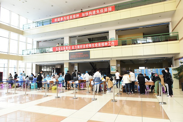 按照党中央和省委的统一部署,学校党委将新冠病毒疫苗接种工作,作为一项重大政治任务和当前疫情防控工作的头号任务来抓。连日来,学校应对新冠肺炎疫情工作指挥部周密部署、多措并举、强化管理,按照“应种尽种、愿种尽种、能种尽种”的原则,有序推进师生疫苗接种工作,全力构筑免疫屏障,巩固来之不易的疫情防控成果。 学校党委高度重视 统一部署疫苗接种工作 为抓好常态化疫情防控工作,学校与属地道外区卫健局、疾控中心、定点医院建立了联防联控机制,并保持着常态化人对人、事对事的密切合作机制。新冠病毒疫苗投放社会接种以后,学校积极主动联系道外区卫健局和疾控中心,于2月20日开学前,组织342名教职员工自愿完成了疫苗接种。 3月24日,省应对新冠肺炎疫情工作领导小组第三十五次会议暨省疫情防控指挥部会议召开,研究部署全省新冠病毒疫苗接种工作。为迅速落实会议精神,加快推进师生疫苗接种工作,3月25日至29日,学校相继召开疫苗接种工作协调会、应对新冠肺炎疫情工作领导小组会议暨推进疫苗接种工作专题会、新冠病毒疫苗接种工作推进会等会议,研究制定《黑龙江工程学院接种新冠病毒疫苗工作方案》,成立新冠病毒疫苗接种工作领导小组,压紧压实责任,按照道外区卫健局的统筹安排,积极协调、主动配合落实疫苗接种各项工作。 师生自愿接种疫苗 接种现场秩序井然 3月25日,学校与道外区卫健局和疾控中心取得联系。道外区卫健局结合学校实际情况,组织辖区多家卫生服务中心,成立了11个疫苗接种工作组,进驻学校为师生提供疫苗接种服务。从3月26日起,学校在逸夫图书馆设立临时接种点,组织全校师生分批次有序接种疫苗。