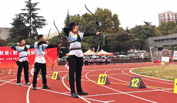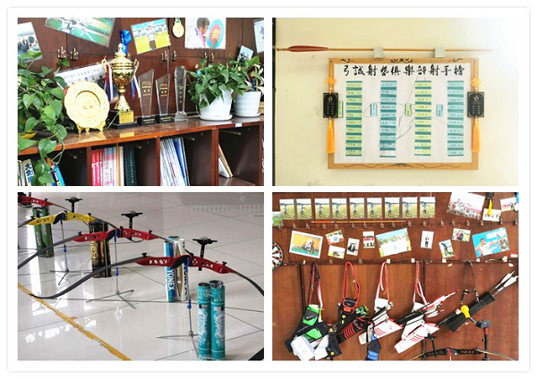 传承践行诠释“以弓载道” 古者射以观德,以弓载道。“箭”最初是古人狩猎、保家卫国的冷兵器,后被注入“德”与“礼”的丰富意蕴,用弓道践行古礼,成为教育的一种方式。我国传统射箭运动历史悠久、博大精深,在古代,古人推崇的君子“六艺”中就包含“射艺”,射箭运动追求的不只是射中靶心瞬间的愉悦,更是道德和修养的提高。 “君子无所争,必也射乎!揖让而升,下而饮,其争也君子。”射箭队员在磨炼射箭技法的同时也在用践行传承着悠久的射箭文化,从射箭运动中体悟人生。谈起射箭带给自身的改变,队员王伟侃侃而谈,民族射箭是一种文化,现代射箭是一种运动。射箭运动让他沉静而专注,而射箭文化则是对心智的磨炼和品格的塑造,这种宝贵的品格使他在学习和生活中不论做任何事情都能锲而不舍、持之以恒。如今,他有了更加清晰的目标,正朝着考取体育专业研究生的方向不断努力。 学校从2015年起开设射艺课程,如今已连续开设6年,成为了学生们最喜爱的体育课程之一。射艺课程不仅仅在于促进学生体能和心智的和谐发展,也不止步于技巧与体力的角逐,更在于通过课程的教学,传承传统的射艺风俗,促使“射者正己”的观念根植于学生心中,使学生深刻体会中华之礼的博大精深,体验中华文明的谦逊与识礼,达到强身健体、涵养品格的目的。  潜心钻研成就“射艺精英” 学校射箭队的训练场地在文体中心一楼的一个角落里。这个不足100平米的房间既是射箭队开展日常训练的场地,也是学校射箭课的上课地点。走进谢明晔老师的射箭课堂,先映入眼帘的便是一组屏风柜,它既是训练场地的隔断,又充当了射箭队的“文化墙”。柜子上陈列着学生们在各类比赛中获得的奖杯、奖牌,贴满了学生们比赛、训练的照片,柜子里摆放着各类书籍,屏风柜下方整齐排列着一组教学弓箭。学生们腰间挎着箭囊,手持弯弓,一字排开,显得精神抖擞。在射箭过程中,伴随着老师的口令,他们弯弓搭箭,牢记动作要领,射向远处的箭靶。