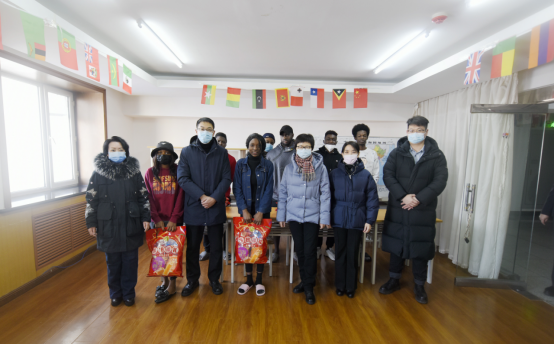 学校领导慰问在校留学生 党政办公室、保卫处、后勤保障处、国际教育学院等单位负责人以及在校值班人员陪同慰问。