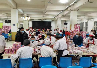 编者按:面对复杂严峻的疫情防控形势,我校一大批教职员工舍小家顾大家,积极投身防疫工作一线,有一分光、发一分热,默默坚守在平凡的岗位上,用实际行动守护我们的校园。今天推出“讲述战‘疫’故事 携手静待花开”第4期《用心守护师生舌尖上的“温暖”》,让我们从中汲取温暖和力量,在这段特殊的时期,并肩战斗、守望相助,共同打赢这场校园疫情防控阻击战。 用心守护师生舌尖上的“温暖” 讲述人:后勤管理处饮食中心大学生美食城经理于贺春 时间在忙碌而充实的工作中犹如白驹过隙。住进校园的时候还是积雪层层的冬天,如今清明节已经过去,春风吹绿了草地、唤醒着枝芽,目之所及一片生机盎然。转眼间,我和同事们住校已一月有余。从晨曦到日暮,为了师生的一餐一饭默默付出,在柴米油盐中品尝酸甜苦辣,在脚踏实地中践行服务师生的初心使命,用心守护师生“舌尖上的温暖”。 由于疫情防控需要,学校两度实施严格的封闭管理措施。在此期间,饮食人迎来了前所未有的“挑战”。3月5日,按照学校疫情防控指挥部的要求,饮食中心的150余名员工开始住校工作。由于事出突然,当时在岗的饮食技术人员与服务人员仅为满岗的一半。为了确保全校一万三千余名师生一日三餐的按时供应,面对人员少、时间紧、任务重的困难,饮食中心全员迅速行动,以最快的速度调运原材料和物资,按照“初加工、切配、炒制、打盒分装、保温配送”的工序分成四个工作小组以流水线的方式工作,提升了工作效率。当一日三餐全部发放完后,所有人脸上都挂着自豪的笑容,我们经受住了考验!正当大家要休息的时候,又接到了次日早餐的分装工作,于是全体人员迅速在美食城一楼集合,大家齐心协力不停地忙碌,全部分装完已经到凌晨。在全体饮食人的努力下,从3月1日至3月14日,饮食中心每日出餐30000余份,保障了在校师生的餐食供应。