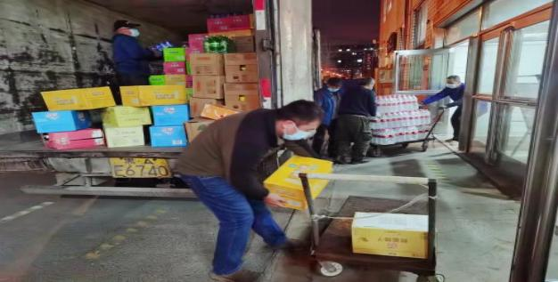 3月15日公寓解除封闭后,我们仍然坚持住校。因疫情形式复杂严峻,为降低外来人员入校的风险,学校实行严格的疫情封控管理,所有送货车辆随车人员不准下车。这也意味着食堂每日大量的食材、饮品、水果等需要我们自行卸车。饮食中心立即成立党员突击队,他们每天除了承担几十吨物品的卸车任务,还要完成车辆消毒、货品消毒、货品抗原体采样等工作,工作量比平时翻了几倍。