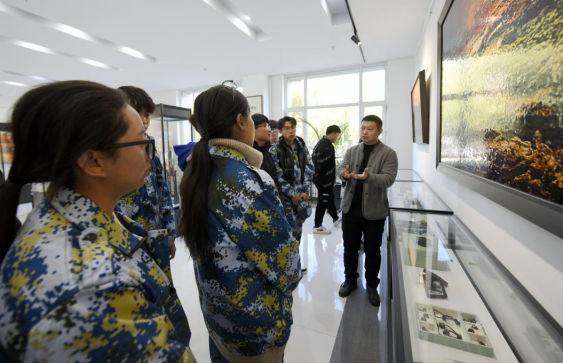 肖禹蓁教授首先带领学生参观漆画展,然后结合自己的成长经历作了题为《“守正创新”漆艺的地域性发展》的报告。通过这场主题活动,不仅带领学生领略了漆画艺术之美,更结合其中蕴含的民族传统文化,深入挖掘促进民族团结进步的元素,呈现了一堂生动的“美育+思政”课,激励学生努力学习、勤奋工作、成长成才。