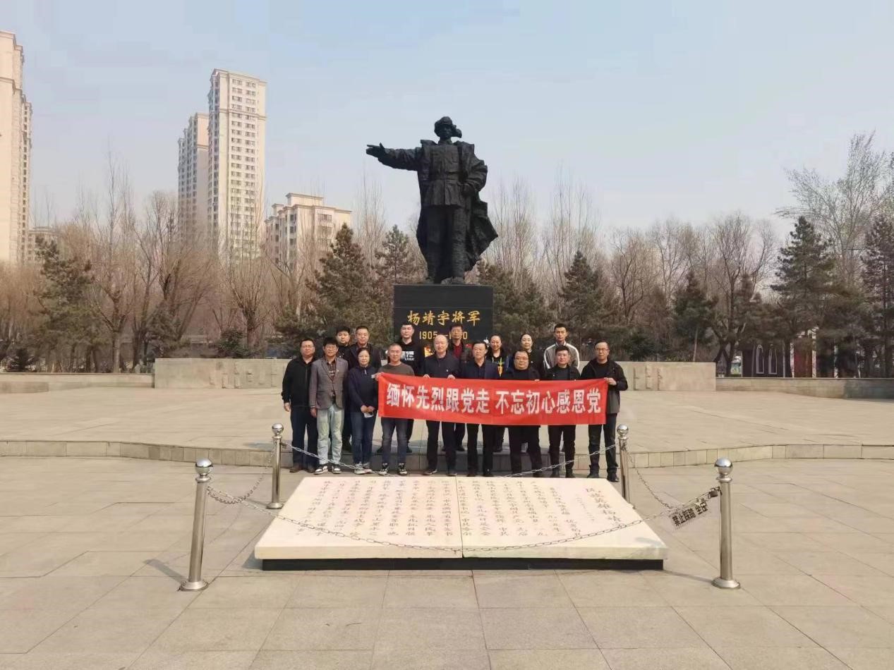 在杨靖宇将军雕像前,全体党员通过重温入党誓词、默哀、敬献花束的方式表达了对革命烈士的哀思。