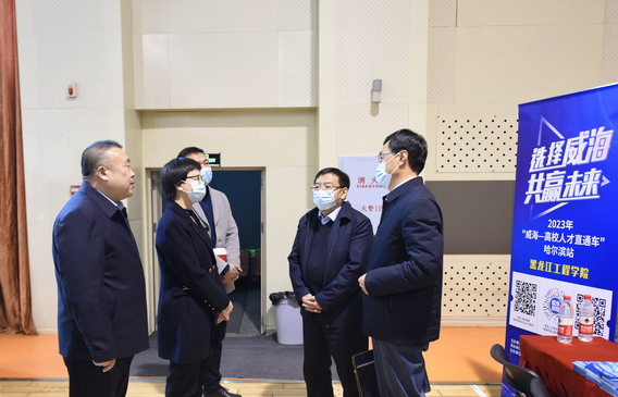 “黑工程学子不仅有扎实的专业基本功,而且踏实肯干,有很好的学习能力和实践能力,这是他们以后进入企业开展工作的优势所在。”明阳智慧能源集团股份公司招聘负责人对学校毕业生给予了高度评价,“希望通过这次双选会,为企业招聘到学校更多更好的应用型人才”。 本次招聘会以“抢抓春招关键期 全力攻坚促就业”为主题,学校党政高度重视、积极谋划、多措并举,全力开展2023年春季学期促就业系列攻坚活动。春季学期恢复举办线下招聘活动以来,学校已组织线下各类招聘活动71场,参会单位340家,提供就业岗位19246个,其中专场招聘61场,地市人才招聘会7场,“情系黑土地 就业在龙江”留省就业专场招聘会1场,理工类毕业生专场招聘会1场,稳固发挥校园招聘主渠道作用。 双选会期间,学校与威海市人社局,学校材料与化学工程学院与威海市高新区科创局分别签订校地人才框架协议,学校与威海市文登区人社局共同为高校毕业生就业和人才引育基地授牌。