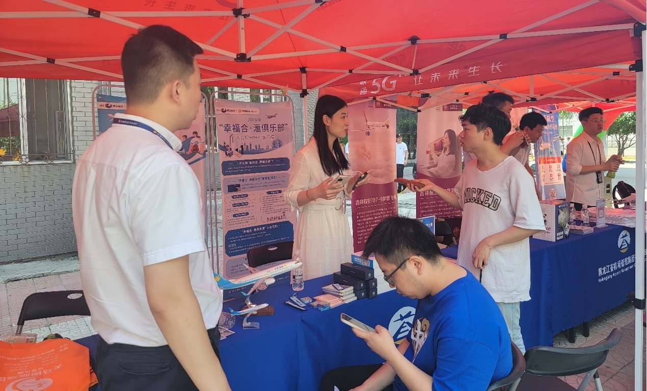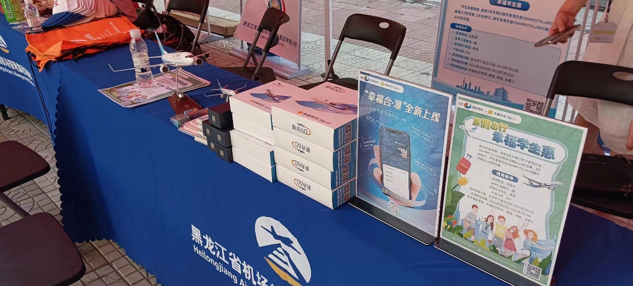6月26日,学生工作部会同黑龙江省机场管理集团联合各驻哈航司等单位,举办航旅企业进校园活动。各航空公司在活动现场为学生提供优惠机票及特价服务产品,现场解答学生问题,发放旅客乘机指南,助力学生暑假返乡之旅。