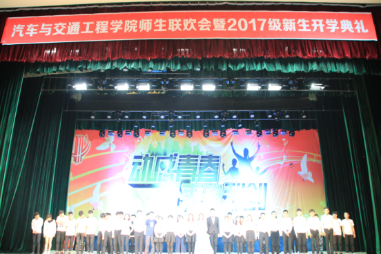 2017年9月6日下午,汽车与交通工程学院2017级新生迎新晚会在大学生活动发展中心隆重举行。本次晚会由王大力书记主持开幕,与会领导有:付百学院长、王大力书记、鲍宇、赵雨旸副院长、王莉副书记、2017级新生辅导员孟彩霞老师,以及2017级新生和2016级学生代表参加了晚会。