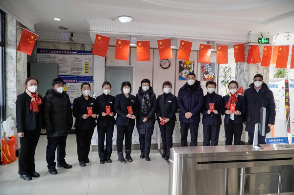 学校领导先后走访慰问了东直路校门、公寓、水暖房等岗位的值班人员,详细了解假期校园安全、宿舍管理、水电后勤等工作运转情况。每到一处,校领导与在岗职工亲切交流,对他们的辛勤工作和努力付出表达了诚挚敬意和衷心感谢,并送上新春慰问和祝福。希望大家在坚守岗位的同时,要注意保重身体,祝愿他们度过一个喜庆祥和的新春佳节。值班值守的教职员工对学校领导的关怀表示感谢,纷纷表示要严格落实各项管理规定,认真履职尽责,全力以赴做好本职工作,保证春节及寒假期间学校安全稳定运行。
