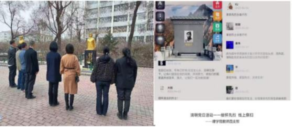 经济管理学院“我们的节日——清明节”为主题开展了系列活动。院党委向全院师生发出倡议书,号召师生线上云游井冈山革命博物馆。教工党支部开展“我们的节日·精神的家园——清明节”主题党日活动,云游东北烈士纪念馆、井冈山革命博物馆,云端祭扫英烈。青年学生开展“缅怀英烈先辈  传承红色基因——我们的清明节”主题党日、团日活动,在太平公园祭奠革命烈士刘胡兰、共产主义战士雷锋。此外,学院还开展了清明节主题诵读活动等。