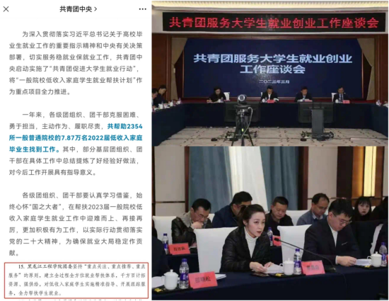 年来,学校共青团围绕学校中心工作,落实立德树人根本任务构建具有工程特色的“六育人”共青团工作体系引领凝聚青年、组织动员青年、联系服务青年等方面成效显著不断开创我校共青团工作新局面。一是强化政治育人,加强学生思想引领、价值引领。坚持把思想引领作为共青团核心任务举办“青年学生党史学习教育”“学习二十大 永远跟党走 奋进新征程”“庆祝建团一百周年”党的青年运动史理论专题学习和主题教育活动开展青马工程培训班”“学生干部培训班新生团支书培训班“团课”等四大团学培训,构建校院两级协同配合、团学骨干带头学习、团员青年共同参与的政治工作格局出台《黑龙江工程学院青年马克思主义者培养工程培养方案》,科学构建“理论学习+实践体验”培养方式,为党培养和输送青年骨干。二是强化组织育人,提升团学组织的吸引力、凝聚力。充分发挥团学组织对学生的组织吸纳、组织规范和组织提升作用,构建以团委为中心,以学生会、学生社团为外围延伸手臂的团学组织育人格局。出台《黑龙江工程学院标准化团支部建设工作方案》,推进基层团组织规范化建设。修订《黑龙江工程学院学生社团管理办法》,加强对学生会和学生社团的指导和管理三是强化实践育人,促进大学生素质提升、全面发展。通过社会实践和志愿服务,提高青年学生奉献社会、服务社会的意识和能力构建课内与课外相结合、校内与校外相结合、专业实践与社会实践相结合实践育人体系扎实推进暑期“三下乡”社会实践大学生社区实践,主动与道外区团委对接,组织我校460个团支部与道外区11个街道52个社区建立结对,共建实践基地,组织学生走进社区基层开展社会实践。组建疫情防控青年志愿服务队,积极参与疫情防控工作全校537名志愿者共计3338人次13352小时,助力学校50余次核酸检测四是强化文化育人,在校园中弘扬主旋律、传播正能量。开展丰富多彩、积极向上的文体活动、学风建设活动、中华传统文化活动,营造积极健康向上的校园文化氛围精心筹备“庆祝建党一百周年文艺晚会”“庆祝建校七十周年文艺晚会”,向建党、建校献礼五是强化服务育人,提升共青团组织的贡献度。以科创竞赛为龙头,以创新、创业、就业活动为载体,构建以服务学生为中心的协同育人机制。举办“挑战杯”“创青春”“知识产权杯等创新创业竞赛,两年来荣获省赛奖项27项,国家奖项2项。开展团干部低收入家庭毕业生就业帮扶,帮扶成功率100%我校团干部就业帮扶工作入选全国典型经验高校,团委书记赴京参加会议并做经验交流。六是强化网络育人,打造网络思政教育阵地。通过团属新媒体平台开展“中国共产党的十万个为什么”“寻找百年足迹”“习近平与大学生朋友们一百个团史故事百年青运跟党走线上主题教育活动用学生喜闻乐见的新媒体形式打造“网上共青团”