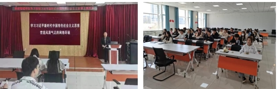 学院党委副书记陈广宇以《认真学习习近平新时代中国特色社会主义思想,营造风清气正的网络环境》为题,通过线上线下相结合的方式,为学院全体学生讲授专题党课。陈广宇解读了习近平总书记关于加快推进网络强国建设的重要指示精神,希望同学们认真研读习近平总书记讲话原文,深入领悟核心要义,贯彻到学习生活当中。一要拒绝网络暴力,做文明网民。二要及时通报网上舆情,将事件影响控制在最小范围。三要自主反击网络不良言论,用正确的思想和价值观念占领网络阵地。四要加强对身边同学的引导,及时发现制止身边不文明网络行为。五要提升自身综合素质,提高网络安全意识和认知能力。六要切实发挥先锋模范作用,党员要在文明上网、合理使用网络方面为普通同学做出榜样。