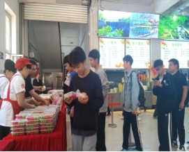 浓浓中秋意,满满爱国情。双节期间,后勤管理处开展了“我们的节日”主题系列活动9月28日,美食城一楼就餐区内挂满了一面面鲜艳的五星红旗,LED大屏幕播放了“情满中秋 欢度国庆”的标语,处处彰显着最美的“中国红”,营造了热烈喜庆的节日氛围。为了能够给没有返乡过节的同学们送去学校的关怀和温暖,9月29,饮食服务中心在美食城一楼餐厅精心准备月饼水果套餐”,免费发放给在校学并送上节日祝福领取到礼物的同学们脸上洋溢着感动与喜悦,感受到了“家”的温暖。学生第八公寓举办了中秋、国庆双节联欢活动,公寓管理人员与同学们一起唱歌、做游戏、吃月饼,共同欢度双节。学生们纷纷表示,虽然不能返乡与父母亲人团圆,但是与老师和同学们一起过节,更能体会到来自大家庭的温暖,是一个既难忘又有意义的中秋国庆佳节。