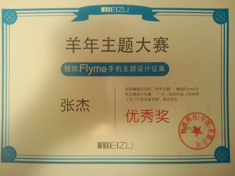 在2015年魅族手机官网举办的羊年主题设计大赛中,艺术学院动漫工作室的张杰、赵秀博同学的原创设计作品《羊咩咩》,通过手绘的形式将羊年的卡通形象生动再现,创作灵感来源于“会上树的羊”,再加上丰富的想象力,更出于贴近生活的考虑,将其拟人化,运用丰富有趣的形态设计出羊年主题。赋以唯美、个性、可爱的主题角色,形成鲜明的主题风格,给用户带来完美体验,在此次比赛中得到了用户们的喜欢和认可,获得手机界面羊年主题设计全国第四名的好成绩。