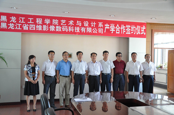 2011年8月23日下午,黑龙江工程学院与黑龙江省四维影像数码科技有限公司产学合作签约仪式在教学办公楼801会议室举行。学校党委书记申林、副校长白玉出席了签字仪式,申林书记代表学校与黑龙江省四维影像数码科技有限公司董事长李学均在合作协议上签字。共青团黑龙江省委副书记陈凯云、中国黑龙江动漫产业(平房)发展基地主任张岩松、教务处处长叶树江、产业处处长任永维、艺术与设计系主任付百学、艺术与设计系党总支书记王宪玲、艺术与设计系的部分教师和学生代表随同参加了签约仪式。签约仪式由白玉副校长主持。