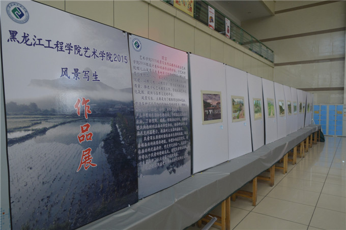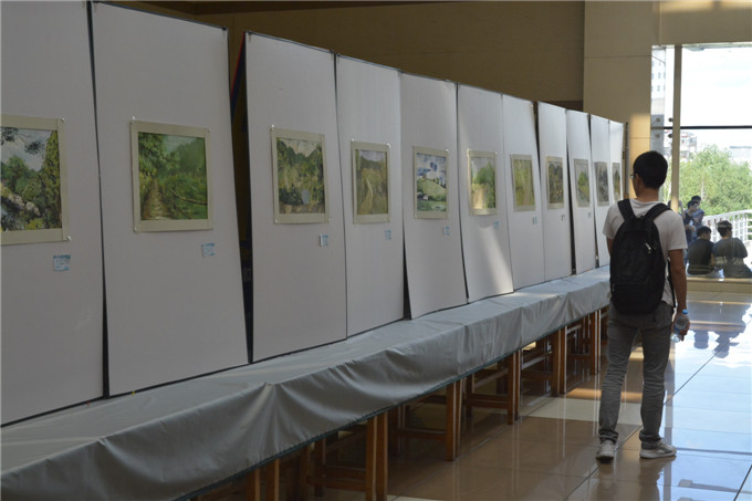 艺术学院2015风景写生作品于6月29日在逸夫图书馆二楼大厅展出,作品来自艺术学院2014级设计类和动画专业的学生,于艺术学院帽儿山风景写生基地实习创作的作品,展出风景写生作品150幅。本次风景写生作品展旨在以展促建,以展促教,以展促学,努力提升教育教学质量;推进学校艺术教育工作,营造校园艺术文化氛围,提供与各界交流的平台。
