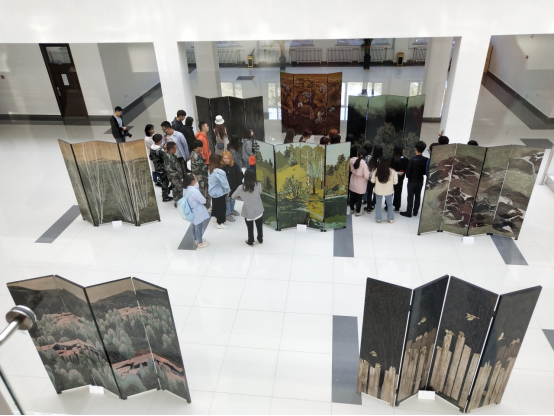 春华秋实,莺啼再试。历时半年,由我校艺术与设计学院工艺美术系、漆画中心、黑龙江工程学院北方漆艺研究所联合创作的一批漆屏风佳作初露峥嵘。日前,在明德楼大厅举办了以“偷得浮生半日‘漆’”为主题的首届全国漆画屏风作品展参评屏风作品展。 这批作品是为了参加中国美术家协会“首届全国漆画屏风作品展”而专门创作的。该展览意在促进漆画艺术与屏风样式的结合、发展与传承,用漆屏风展现美、宣传美、弘扬美,实现中华优秀传统文化的创造性转化和创新性发展,推出精品力作,弘扬中国精神,展现文化自信。 这批作品由8组屏风组成,由工艺美术系教师指导,10名学生参与创作。作品立足当下、彰显正气,植根传统、推陈出新,主题鲜明,风格多样,精雕细琢。 复评入选作品将由海澜集团收藏,所以部分作品将付之东“游”,将无缘与师生再见。为了让全校师生先睹为快,领略漆艺术与屏风文化的美好结合,艺术与设计学院抢得送展之前的半日,匆匆办此展览,以供全校师生点评观赏。同时向新中国成立70周年、学校本科办学20周年、艺术与设计学院工艺美术系成立2周年献礼。