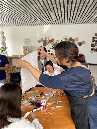 李秋阳老师正在给大家讲解 教师们制作扎染作品 教师们的扎染作品 教师们的作品造型新颖,形态各异,表现手法大胆、夸张,体现出了艺术与设计学院教师队伍勇于突破勇于创新的精神,大家互赏互评互动,现场气氛其乐融融,在一片欢声笑语中,活动圆满结束。 教师节的一系列工会活动丰富了教职工授课科研之余时间的娱乐。通过活动,增强教职工体质,增强教职工之间的凝聚力,构建“快乐工作、健康生活”的和谐文明工作氛围,增进了教职工团体的友谊,激发了大家的工作热情,