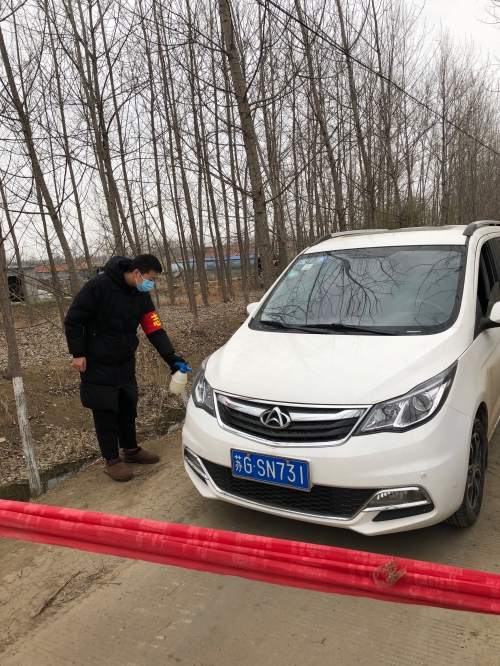 测绘18-2班 丁如中 入党积极分子 在家乡江苏省连云港市东海县民主村做志愿者,在村口工作站检查车辆,给出入村人员量体温,记录出入村人员信息及车辆信息。