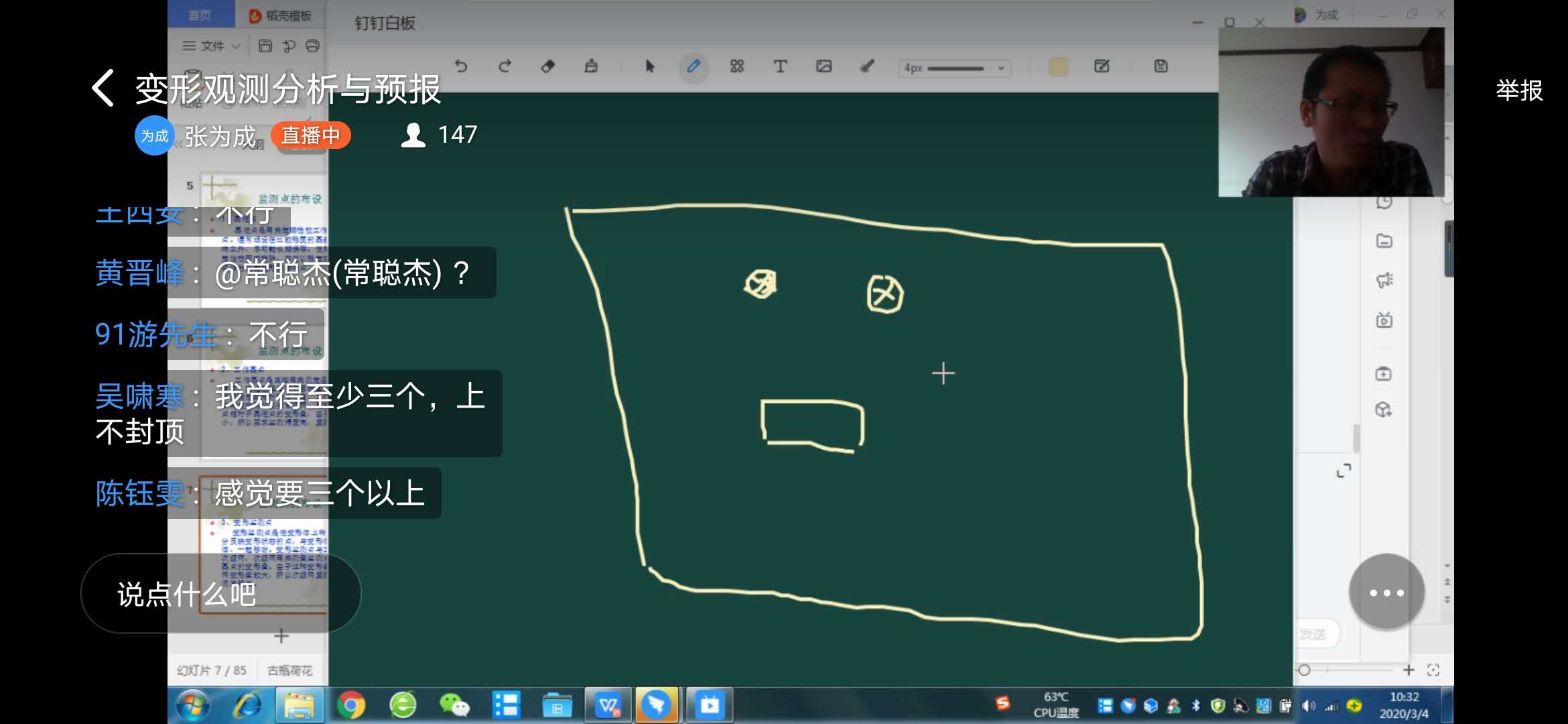 地理信息工程系本学期共8位教师承担网上理论教学任务,开出率100%。对于常年线下教学的老师而言,开设网络直播授课所面临的困难是不言而喻的,又是一个新的挑战,不论是教学技巧还是课堂氛围的把控,都与线下教学有着千差万别,好多老师对于线上直播可谓是一头雾水。为了完成开学初的网上教学任务,地理信息工程系认真组织老师进行研讨,选择合适的网络教学平台。多数教师选择了钉钉系统作为网络直播课的平台,个别老师选择慕课作为网络直播课的平台。尽管开设网络直播课面临很多困难和挑战,但老师们没有一个人退缩,迎难而上,学习钉钉系统的签到功能、直播功能,学习教师与学生的互动操作,学习钉钉系统的手机版和电脑版结合使用,有的老师还提前与学生进行在线测试和试播,功夫不负有心人,在大家的共同努力下,3月2日直播课都如期开课。