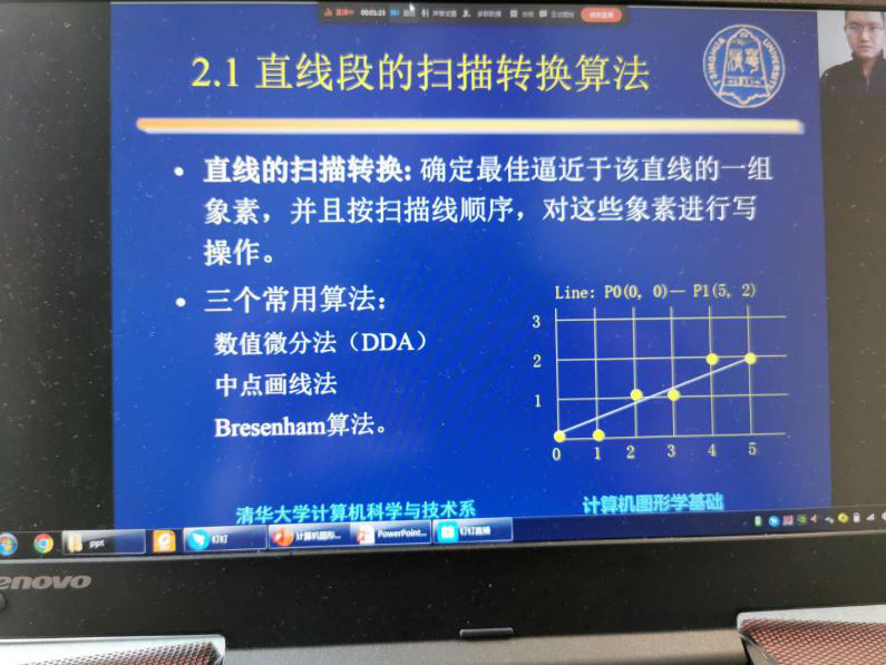 田泽宇老师和张玉娟老师分别承担了18级地理信息科学专业、遥感科学与技术《计算机图形学》的课程教学任务,他们结合中国慕课平台和钉钉群直播的方式进行线上教学。为了减小网络信号问题给学带来的学习困难,两位老师提前将授课计划、讲义、教学大纲等教学资源发送给学生,并在每次课程开展的前两天,以群公告的形式告知学生慕课资源章节,学生既可以采用提前学习慕课也可采用正常课程进行中的方式学习。《计算机图形学》课程涉及大量算法推导,板书教学最适合算法推导讲解,张玉娟老师采用了手机投屏和白纸、黑笔、彩笔结合的方式对重点、难点算法进行直播推导,提供学生最直观的学习过程。与线下课堂教学不同,慕课教学课程教学速度较快,为了使学生们能够跟上教学进度,田泽宇老师和张玉娟老师不要求学生在课上记录课堂笔记,而是将重点内容以课堂笔记资源的方式发送给学生,让学生课后整理。